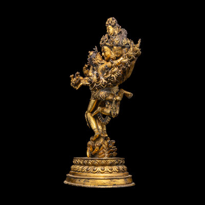 A Sino-Tibetan Gilt Copper Alloy Figure of Hevajra