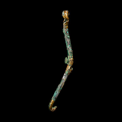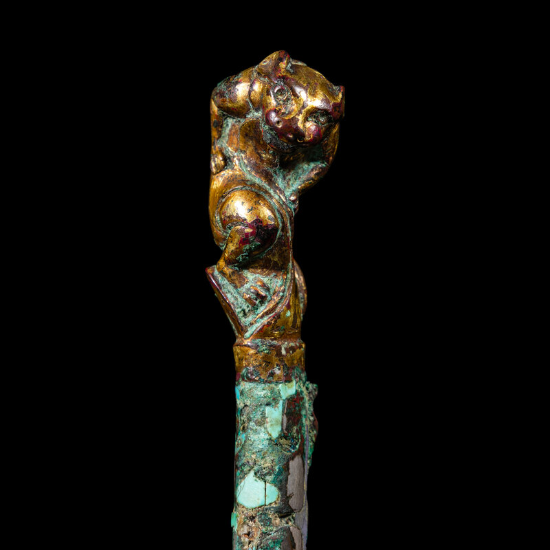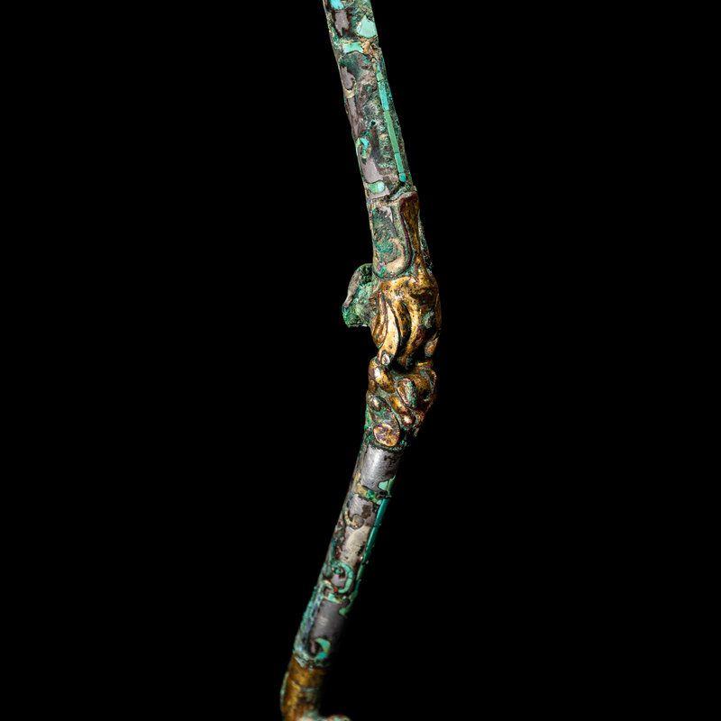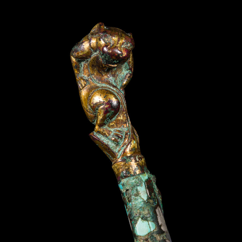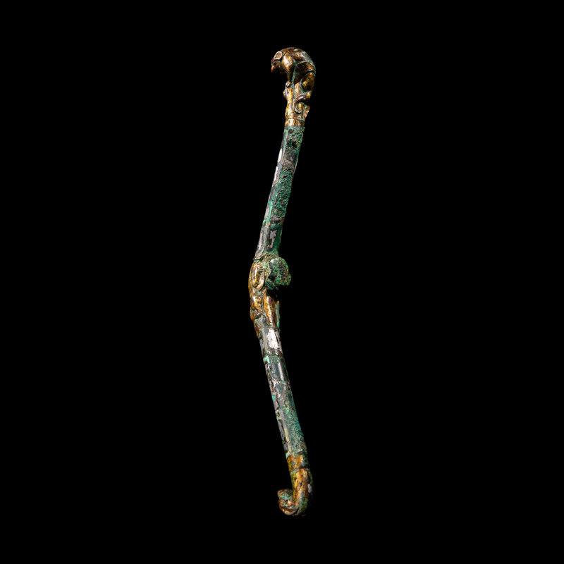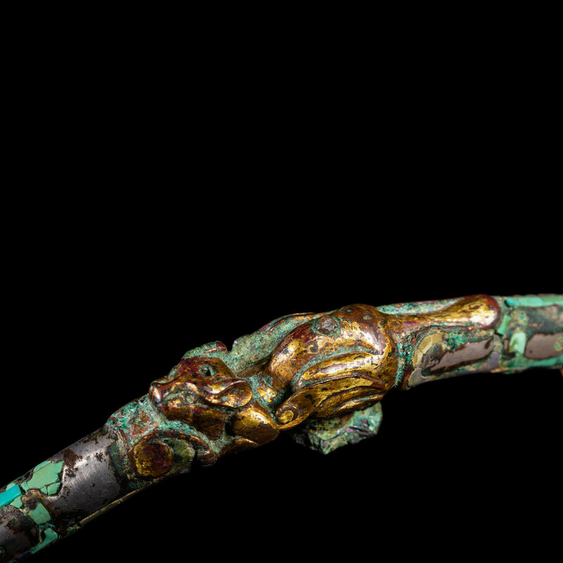 戰國 銅鎏金錯銀嵌松石雙獸首帶鉤