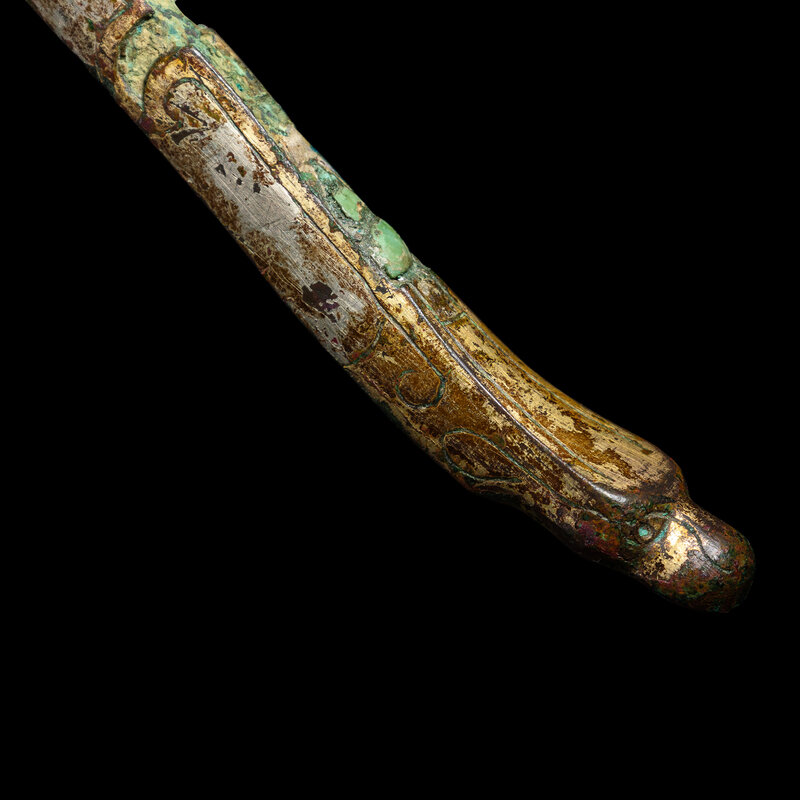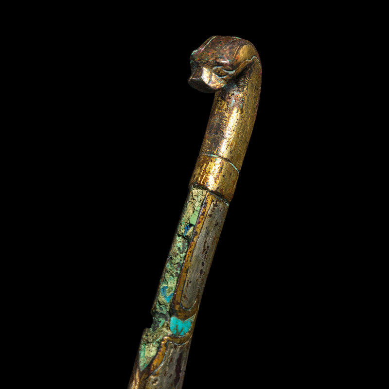 A Chinese Gilt, Silvered and Turquoise Inlaid 'Rabbit' Gold Belt Hook, Warring States Period