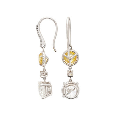 FANCY VIVID YELLOW DIAMOND AND DIAMOND EARRINGS