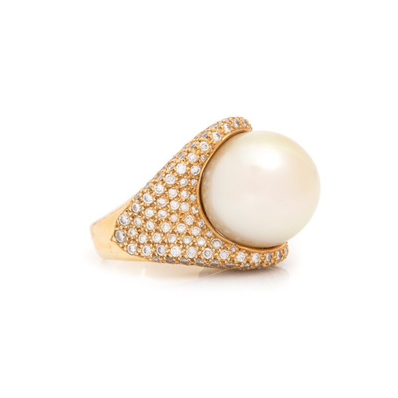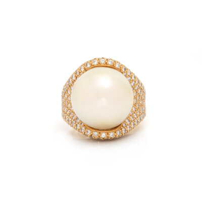 GOLDEN SOUTH SEA CULTURED PEARL AND DIAMOND RING