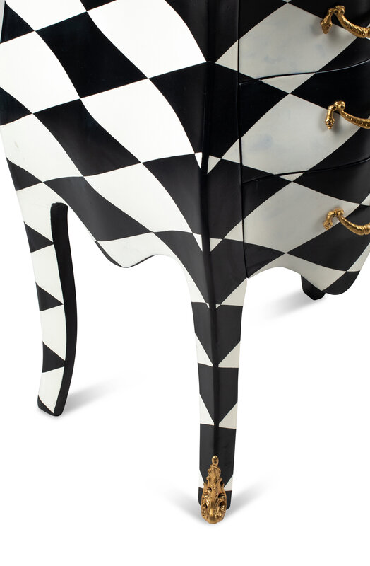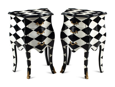 A Pair of Black and White Painted Small Commodes