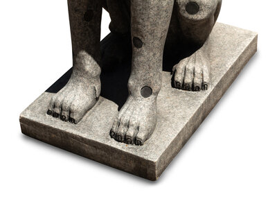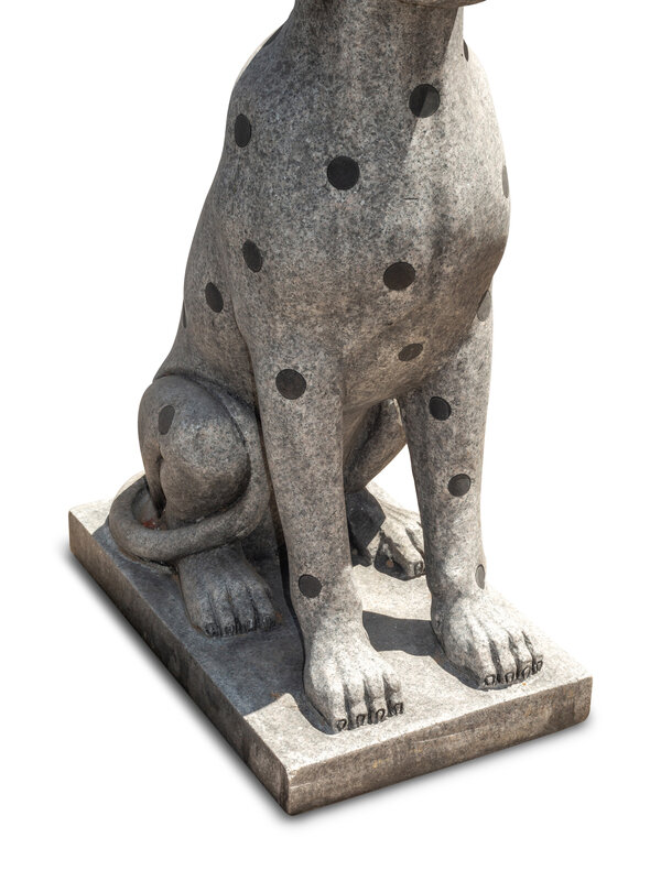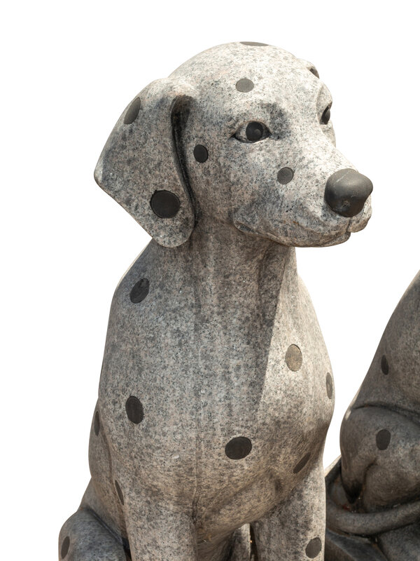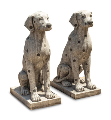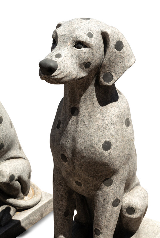 A Pair of Carved Granite and Black Marble Inlaid Seated Dogs