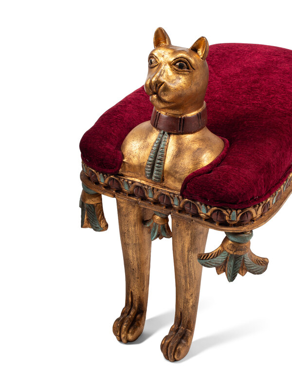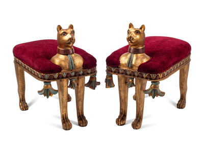 A Pair of Egyptian Style Giltwood Cat-Form Stools