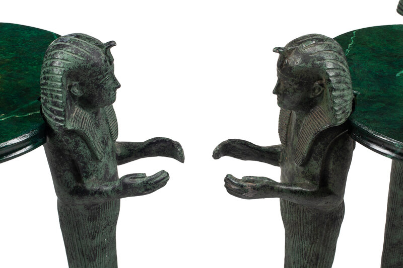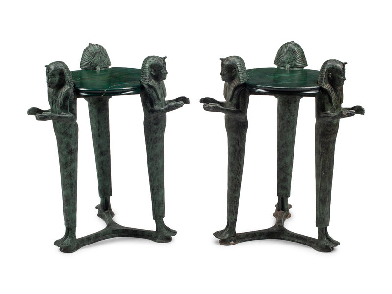 A Pair of Egyptian Style Faux Marble Painted Side Tables