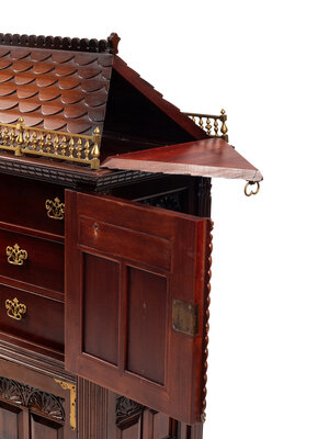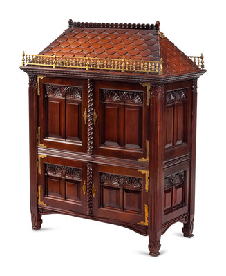 A Georgian Style Walnut Architectural-Form Cabinet