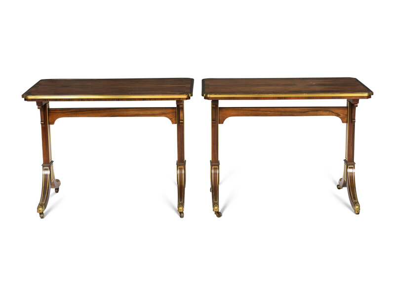 A Pair of Regency Style Brass Mounted Rosewood Sofa Tables