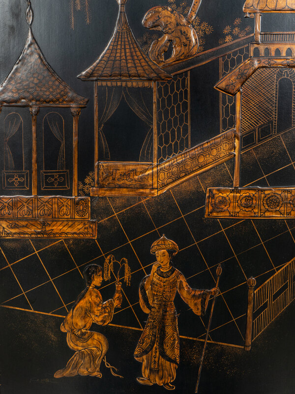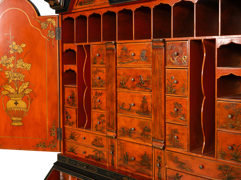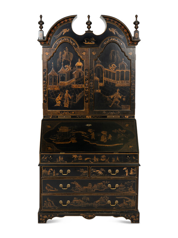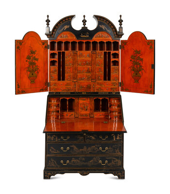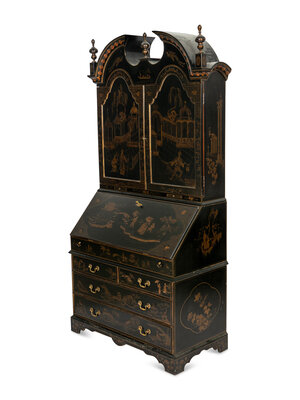 A George II Style Black and Gilt-Japanned Bureau Cabinet