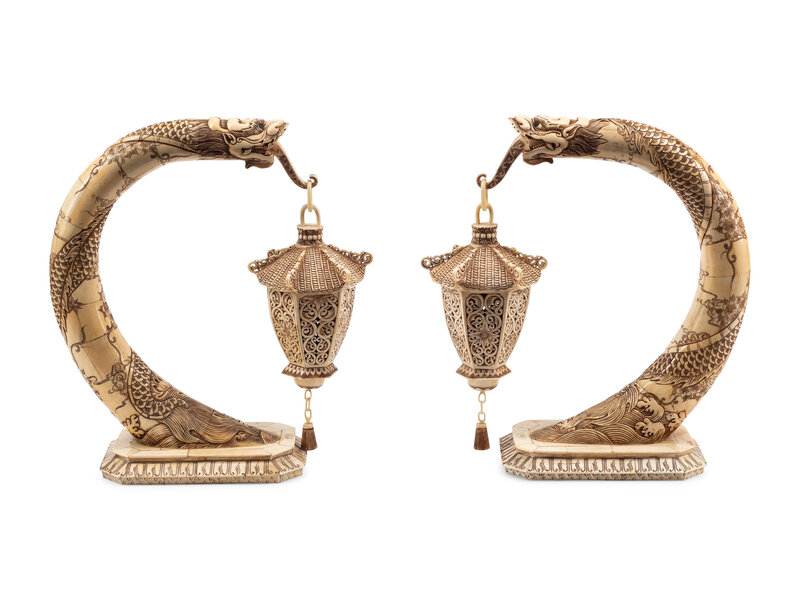 A Pair of Chinese Bone-Veneered Lantern Ornaments