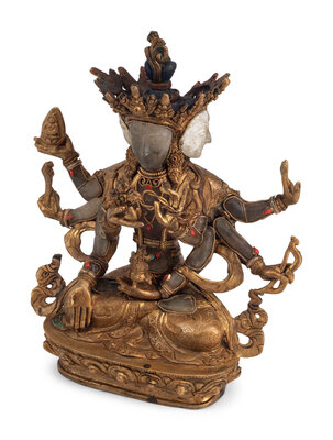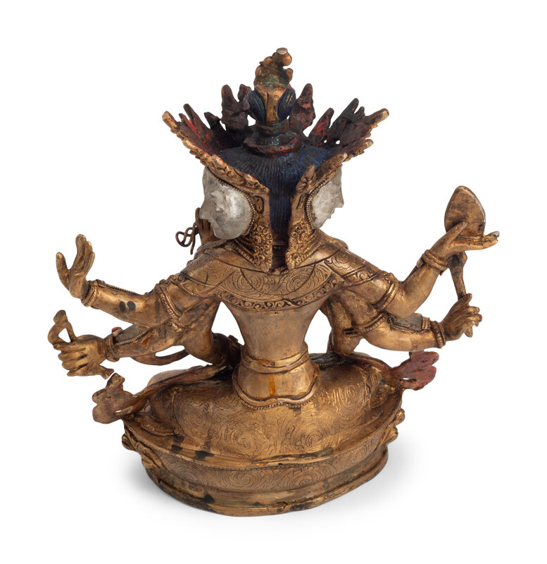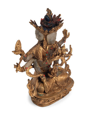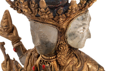 A Tibetan Style Gilt Bronze, Rock Crystal and Cabochon-Inset Figure of a Deity