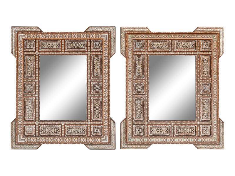 A Pair of Moorish Style Marquetry Mirrors