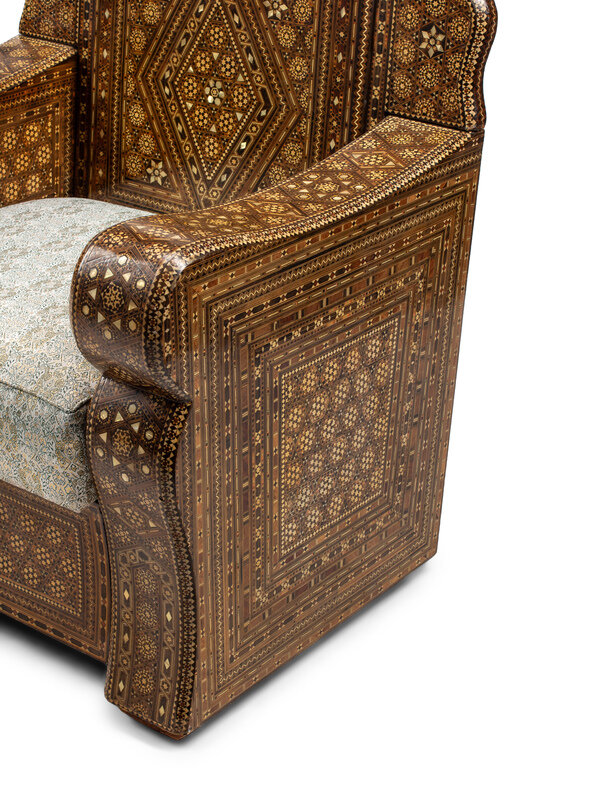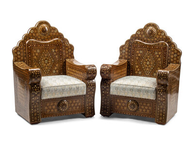A Pair of Moroccan Marquetry and Mother-of-Pearl Inlaid Lounge Chairs