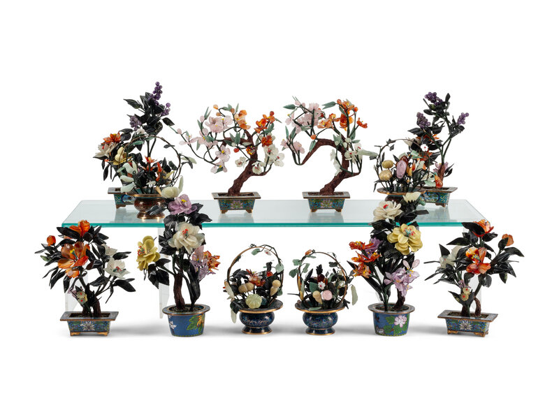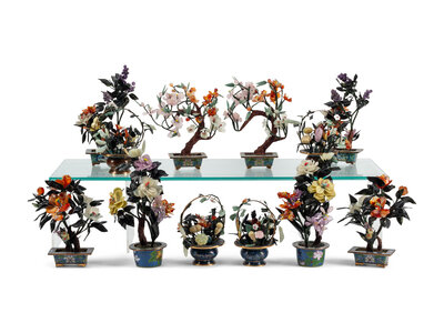 Six Pairs of Chinese Hardstone Models of Flowering Trees