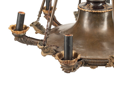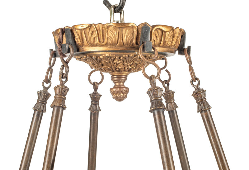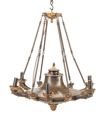 An Empire Style Bronze and Tôle Six-Light Chandelier