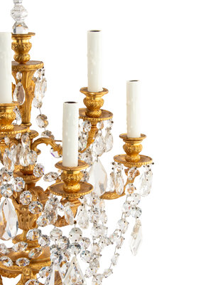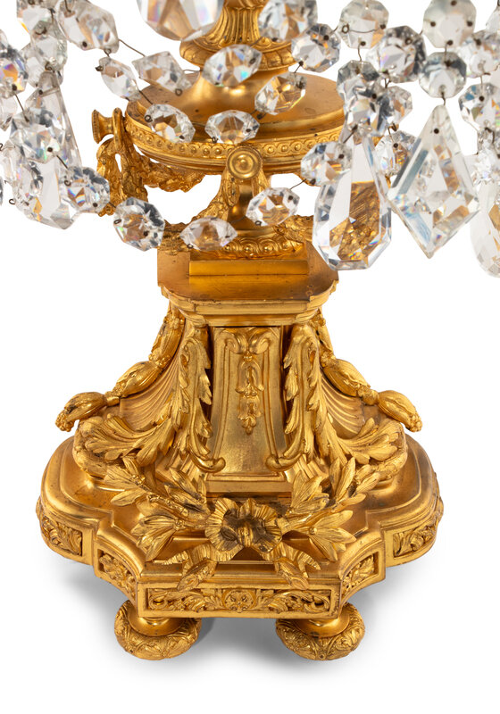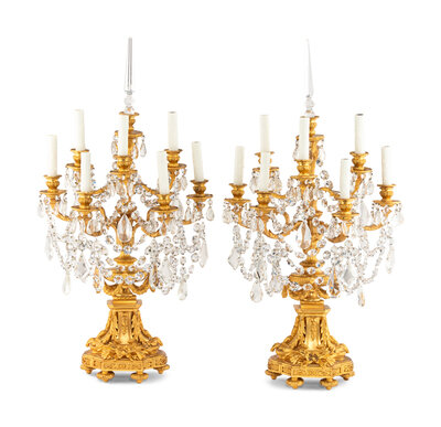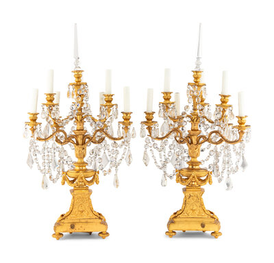 A Pair of French Gilt Bronze and Cut Glass Seven-Light Candelabra