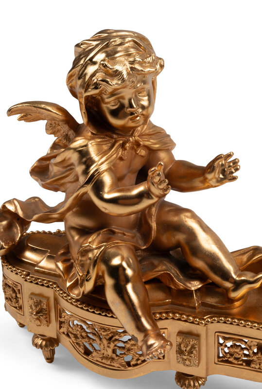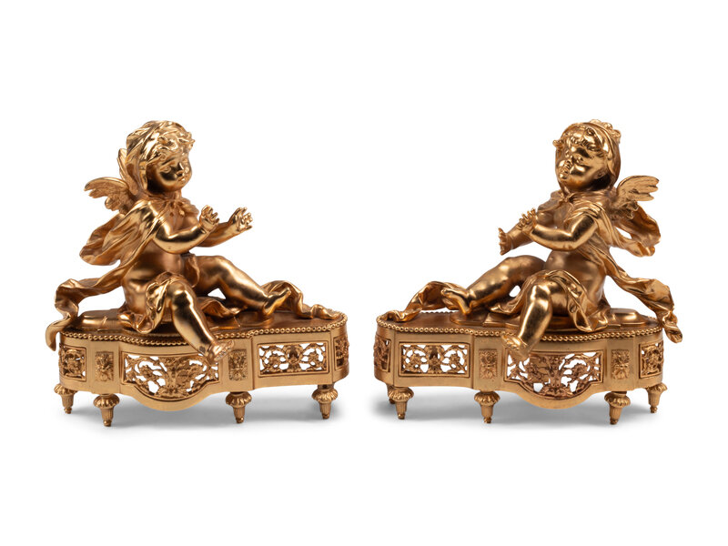 A Pair of French Gilt Bronze Figural Chenets