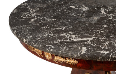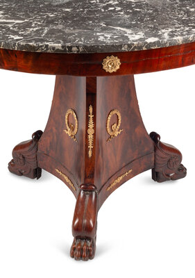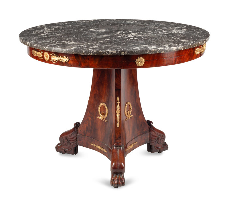 A Louis Phillippe Gilt Bronze Mounted Mahogany Marble-Top Center Table