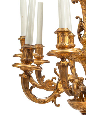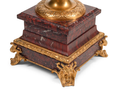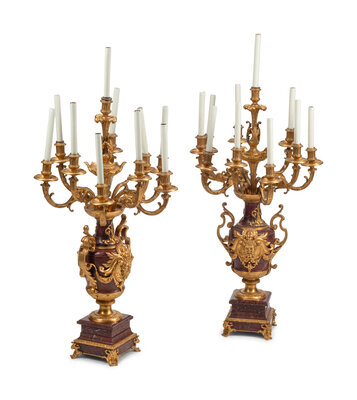 A Pair of Napoleon III Gilt Bronze and Rouge Griotte Marble Ten-Light Candelabra