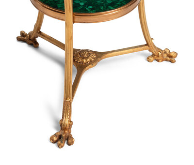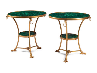 A Pair of Neoclassical Gilt Bronze and Malachite Guéridons