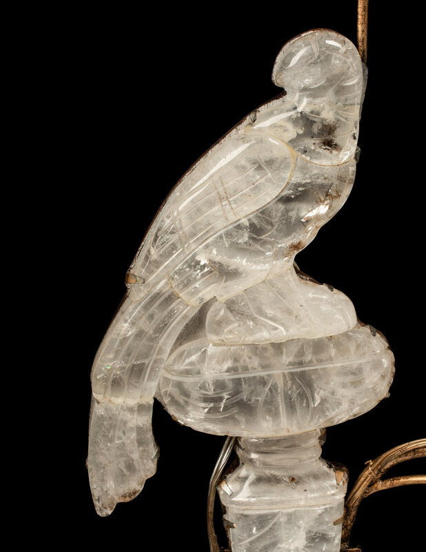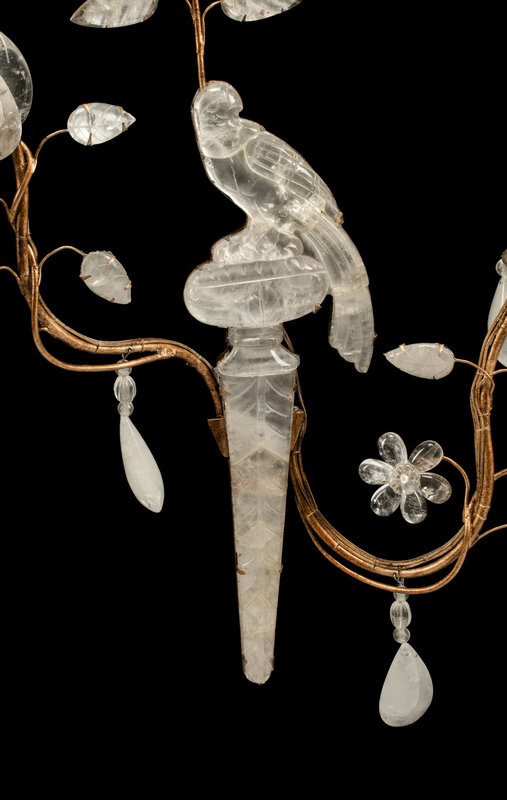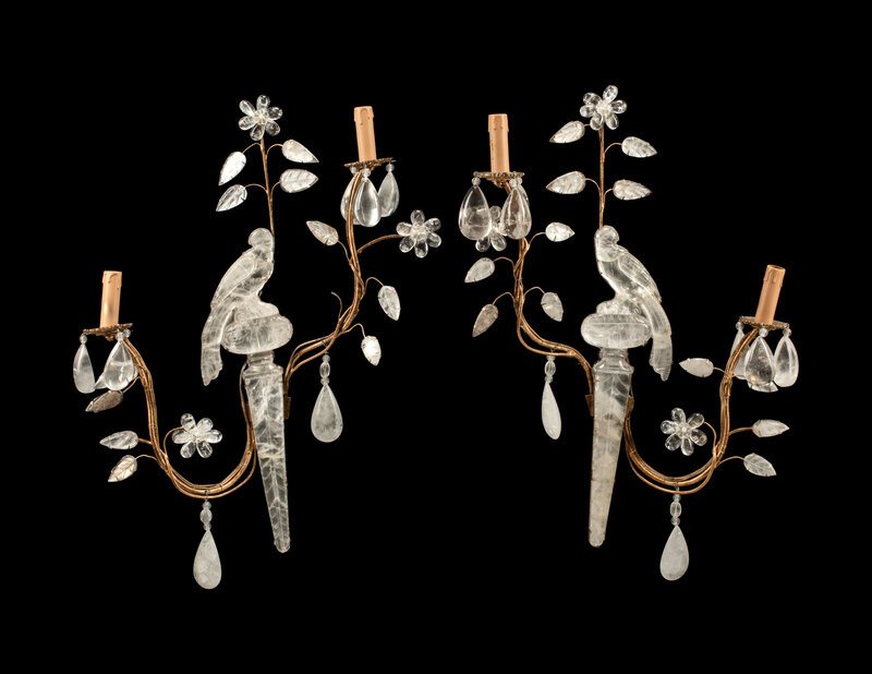 A Pair of Gilt Metal and Rock Crystal Two-Light Sconces