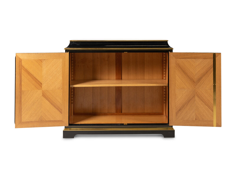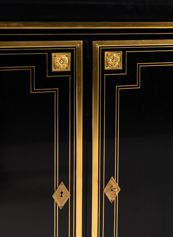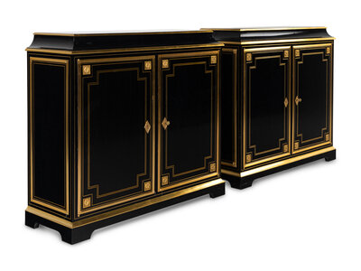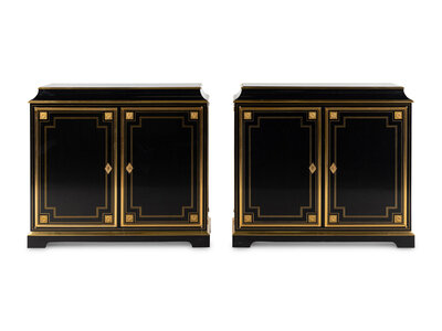 A Pair of Custom Gilt Bronze Mounted Ebonized Cabinets