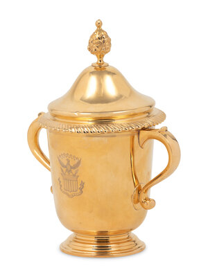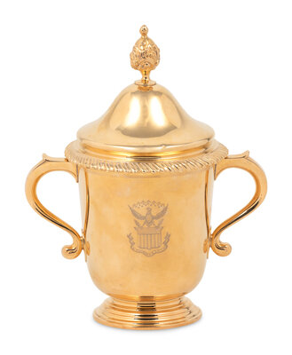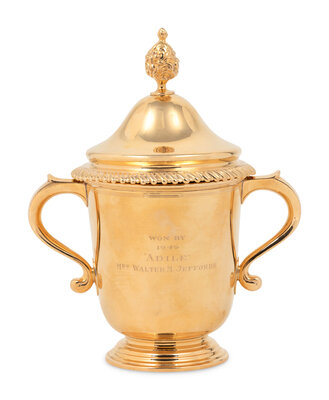 A 14-Karat Gold Cup and Cover of Horse Racing Interest
