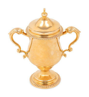 A Tiffany and Co. 14-Karat Gold Cup and Cover of Horse Racing Interest