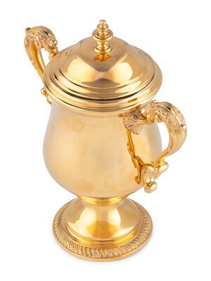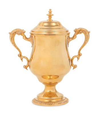 A Tiffany and Co. 14-Karat Gold Cup and Cover of Horse Racing Interest