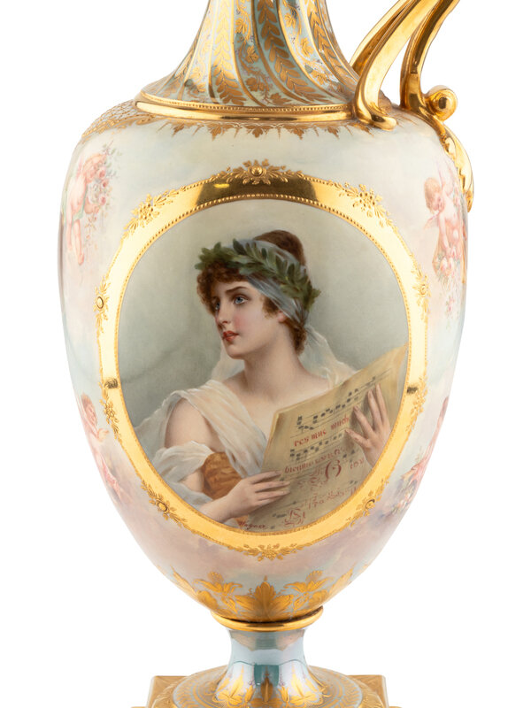 depicting Daphne and Calliope, each of the scenes signed 'Wagner' lower center; bearing beehive mark in underglaze blue and further inscribed and numbered '26427' in iron red to the underside.