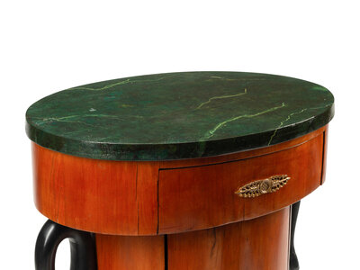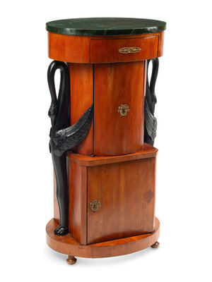 An Unusual North European Walnut, Part Ebonized and Faux Marble Painted Three-Part Cabinet