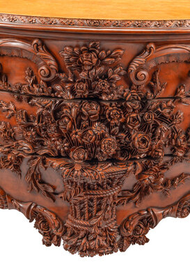 A Continental Floral-Carved and Painted Wood Commode