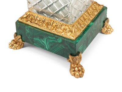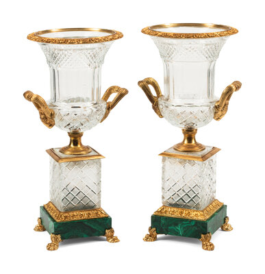 A Pair of Continental Gilt Bronze, Cut Glass and Malachite Urns
