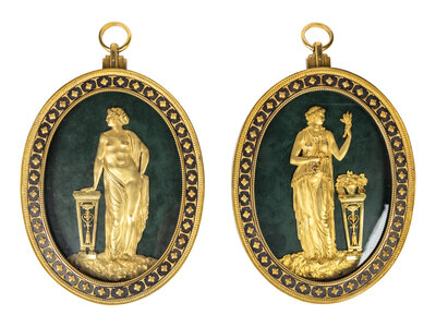 A Pair of Continental Tôle and Gilt Bronze Plaques