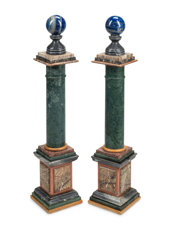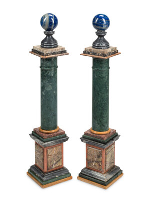 A Pair of Large Grand Tour Style Specimen Marble Column Ornaments