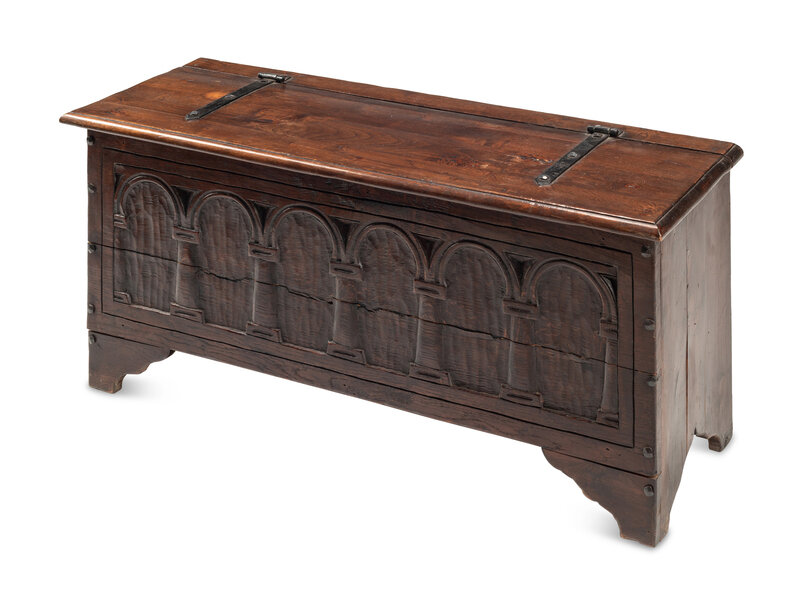 A Renaissance Revival Oak and Walnut Coffer