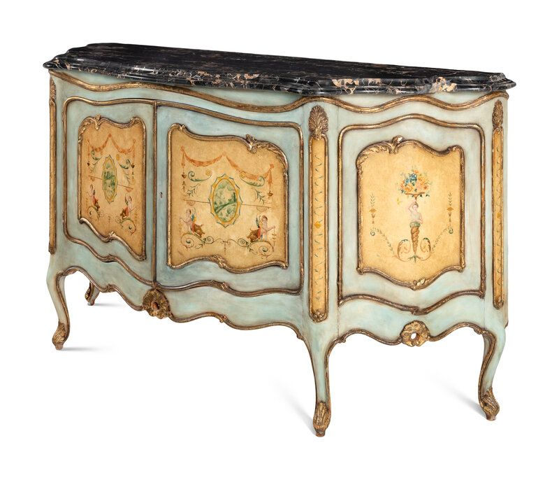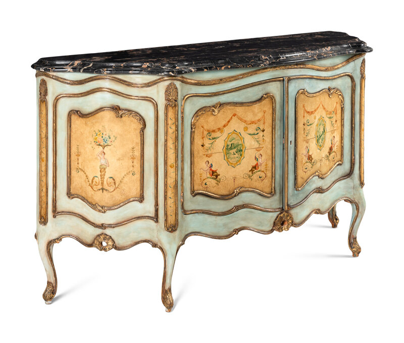 A Venetian Style Painted Marble-Top Commode