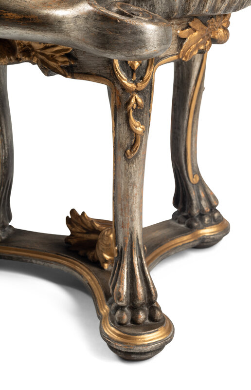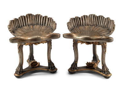 A Pair of Continental Parcel Gilt and Silvered Wood “Grotto” Stools