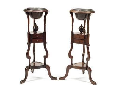 A Pair of Georgian Style Walnut Jug and Bowl Stands