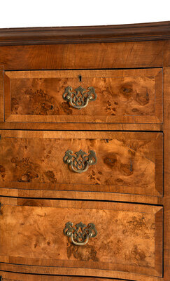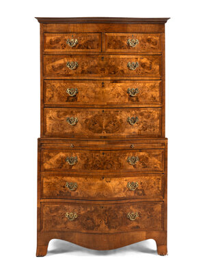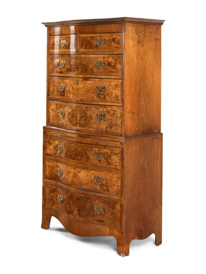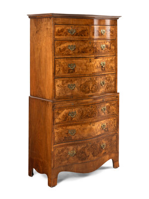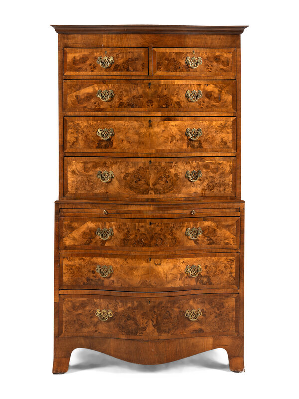 A George III Burl Walnut and Mahogany Serpentine Chest-on-Chest