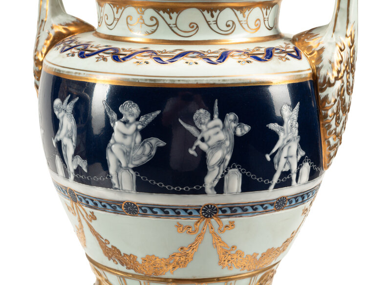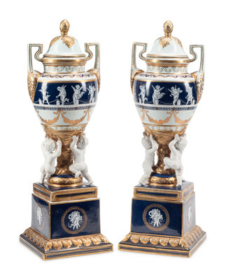 A Pair of Minton Style Pâte-sur-Pâte Porcelain Urns
