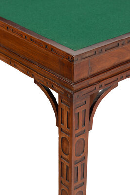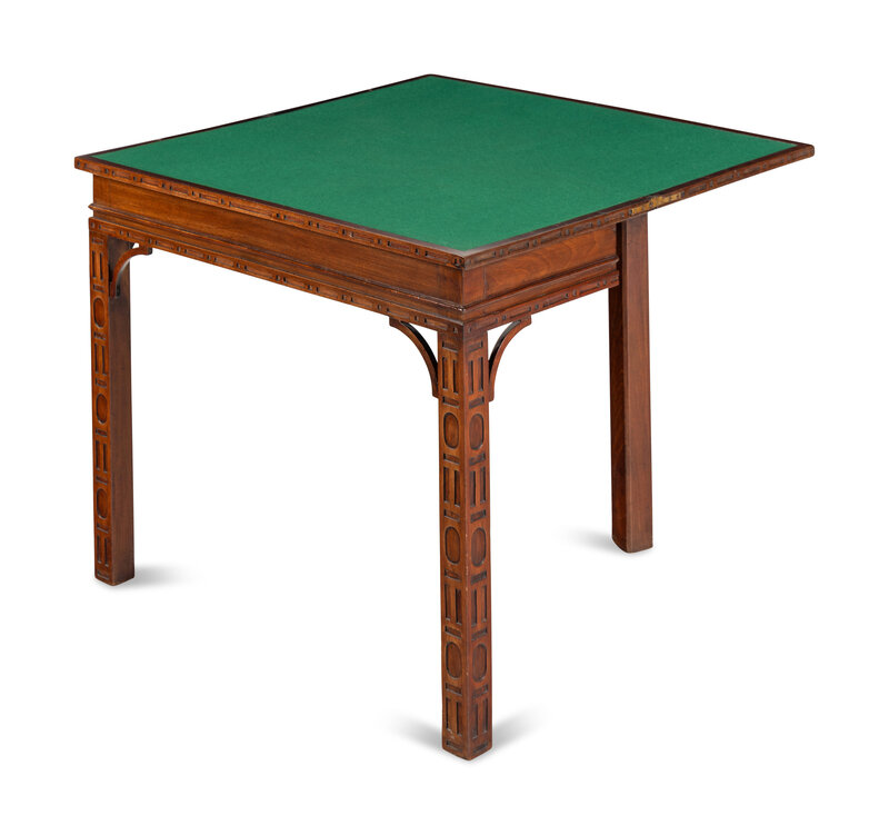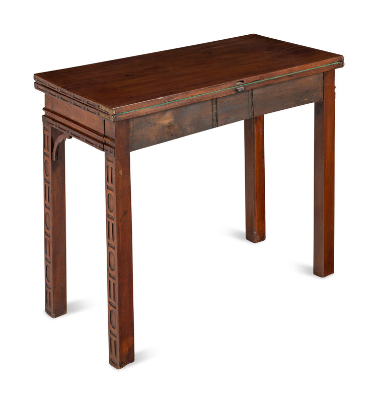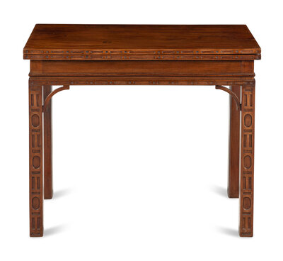 A George III Mahogany Blind Fret Carved Flip-Top Table