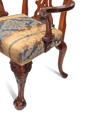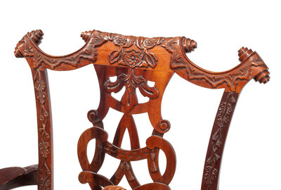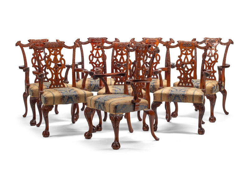 A Set of Eight George III Style Carved Mahogany Dining Chairs