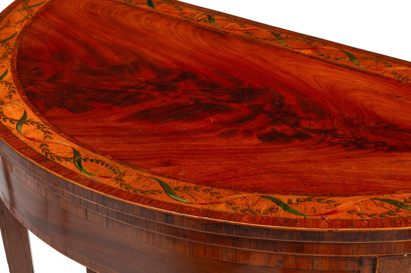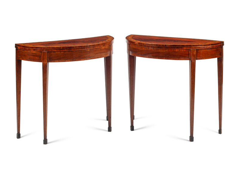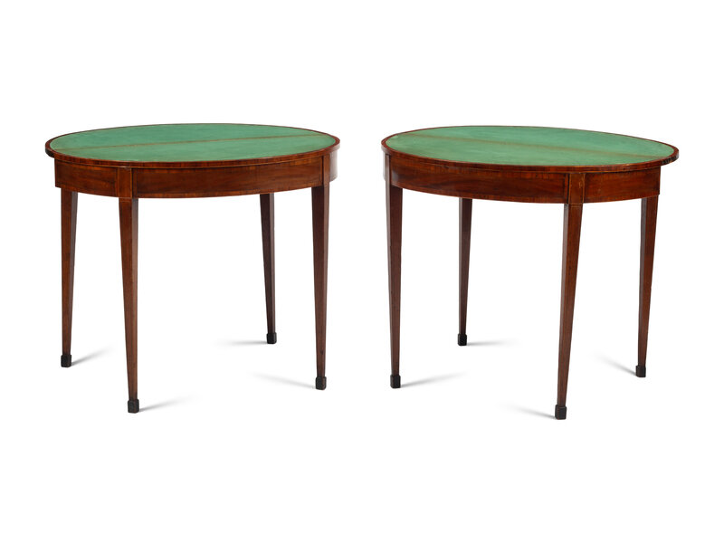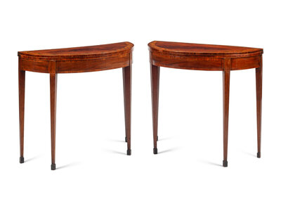 A Pair of George III Painted Satinwood-Inlaid Mahogany Flip-Top Tables