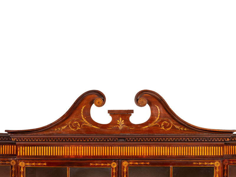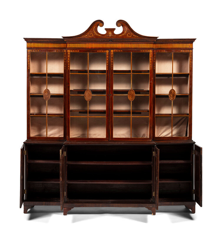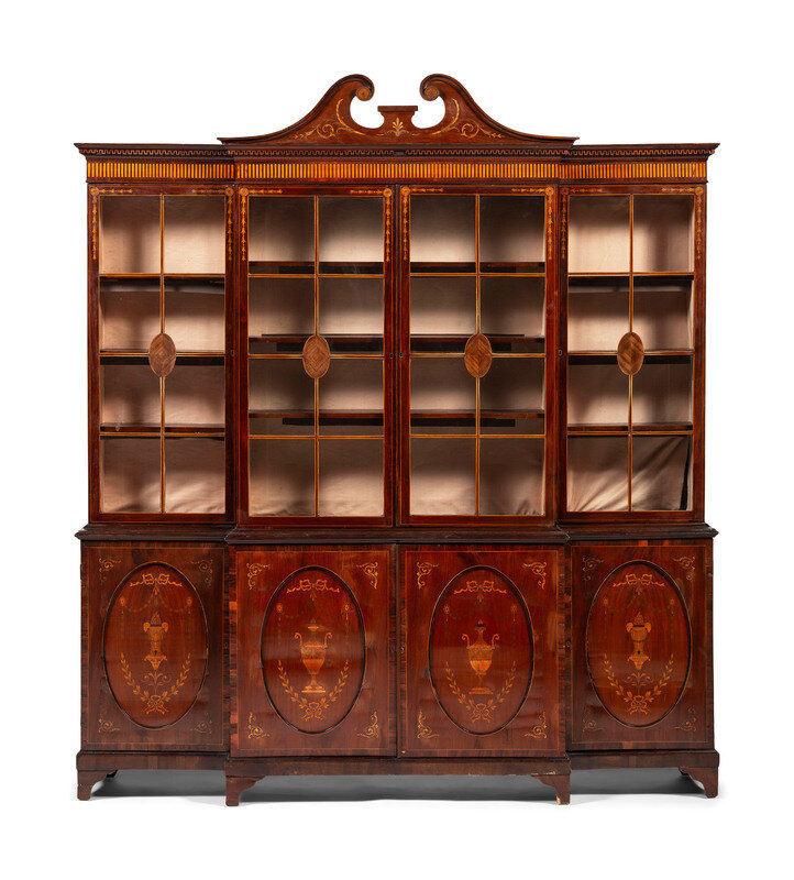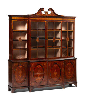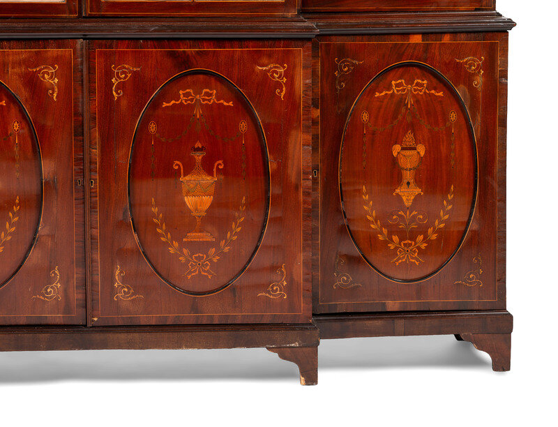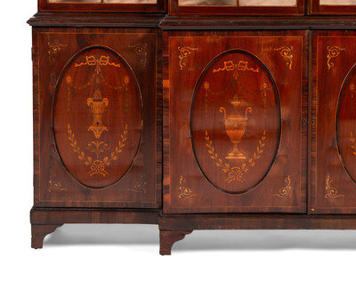 An English Mahogany and Marquetry Breakfront Bookcase