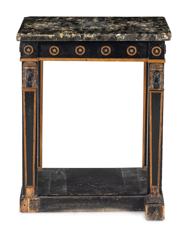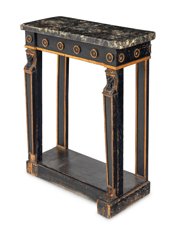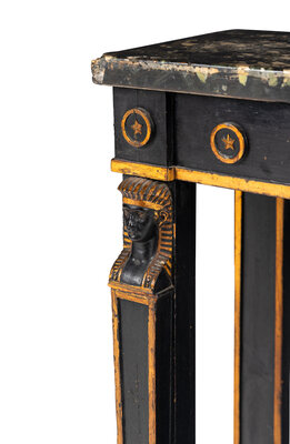 A Regency Style Parcel Gilt and Ebonized Pier Table