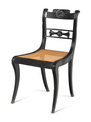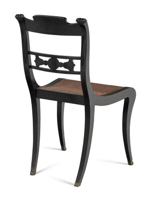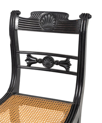 A Set of Four Regency Shell Carved Ebony Side Chairs