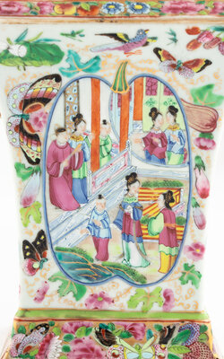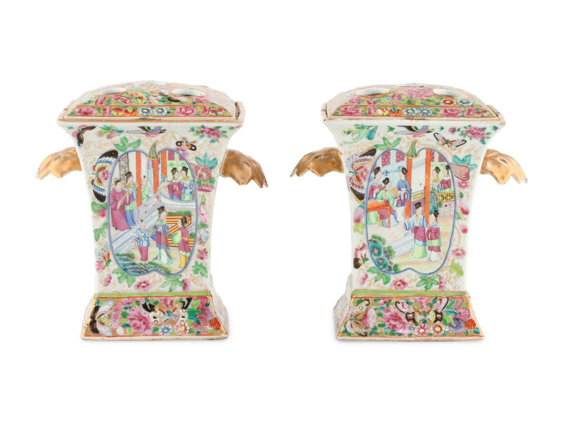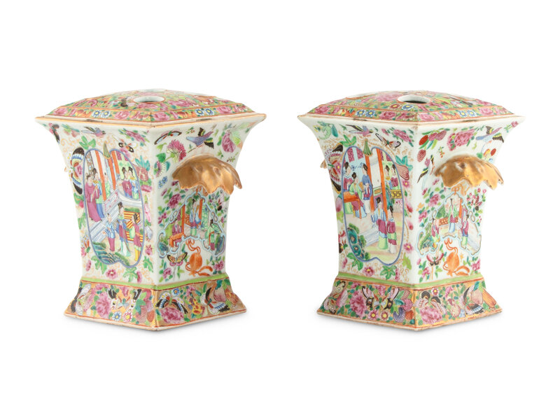 A Pair of Chinese Export Rose Medallion Covered Flower Vases