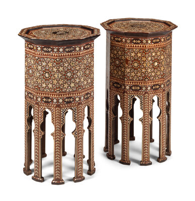 A Pair of Levantine Mother-of-Pearl Inlaid Marquetry Side Tables