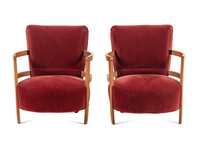 A Pair of Art Deco Velvet Upholstered Armchairs
