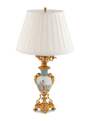 A Gilt Bronze Mounted Sèvres Style Porcelain Urn Mounted as a Lamp